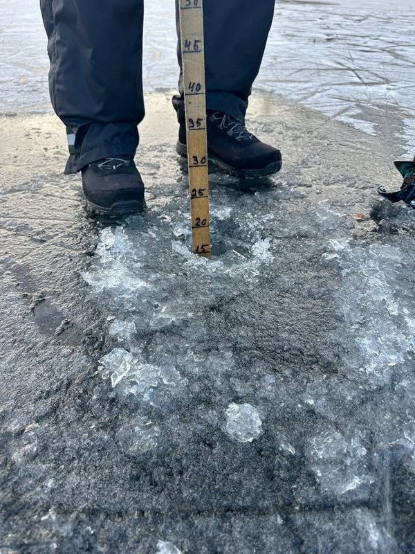 Har målt isen idag, på Svea er det 15 cm med klar stålis, det samme er det på Belteren og Viggeren.