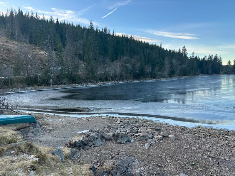 På Myllavannet er det 10 cm stålis, her kan det være problem med å komme utpå for vannet har sunket etter at isen har lagt seg slik at det er nedoverbakke 1-2 meter hvor det er veldig glatt.