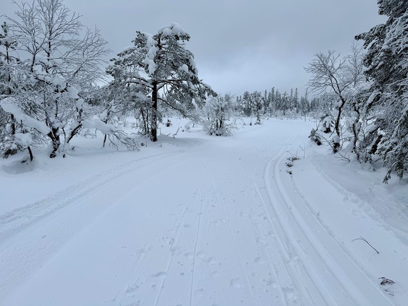 Etter en mild høst, har vi nå hatt flere frostnetter og kaldere skal det bli. De siste ukene har det kommet noen cm snø og vi håper på mer. Det har vært mye arbeid i løypetraseene i høst etter trefall og mye vann, men nå er løypetraseene på Mylla klare for vinteren etter to store dugnader og flere mindre.