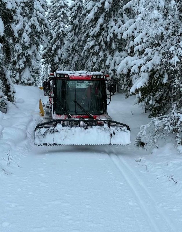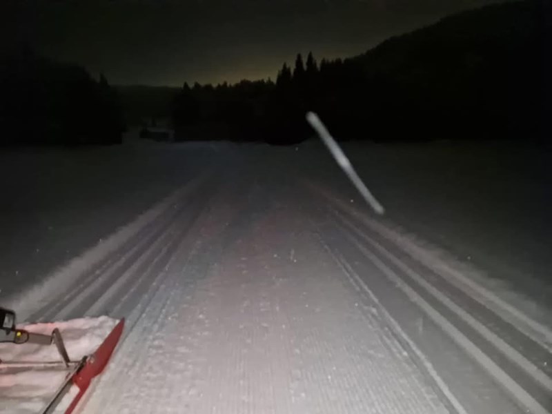 Snøscooterløypene og maskinløyper som venter på mer snø er frisket opp igjen utover natten av Stian og Bård.