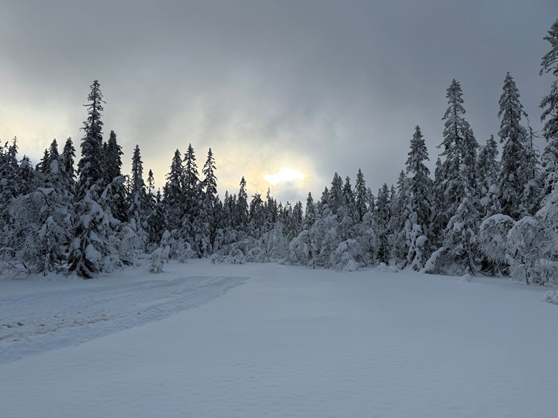 Sola fant en luke i skylaget i går, akkurat der løypemaskinen har snudd i Formoløypa.