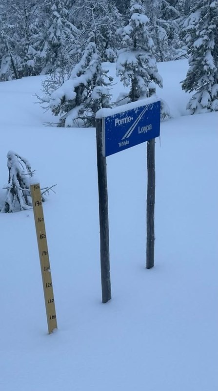 På Bislingen i går viste målestaven totalt 90 cm, dette er vinterens rekord, vil tro den blir slått i dag.