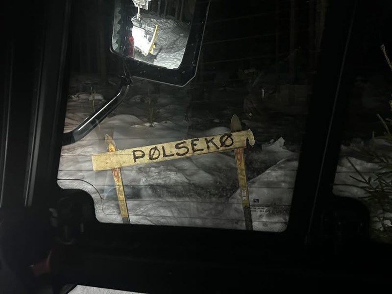 Foto tatt gjennom vindu på løypemaskinen kl 23.30 Kvelden før Skirennet i Naturbarnehagen.