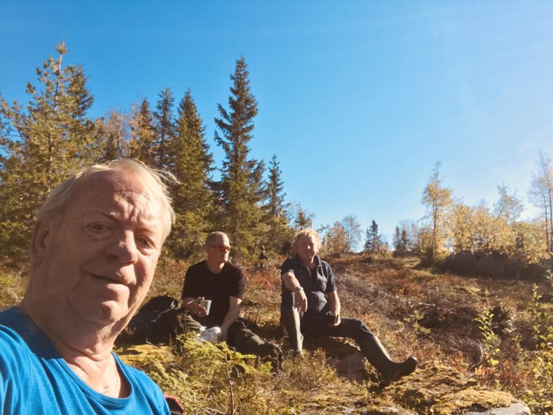 Lunsj etter innsats i den nye løypa fra Bislingen: Knut Pedersen, Stian Hauger og Sverre Sjøblom. Foto: Knut Pedersen