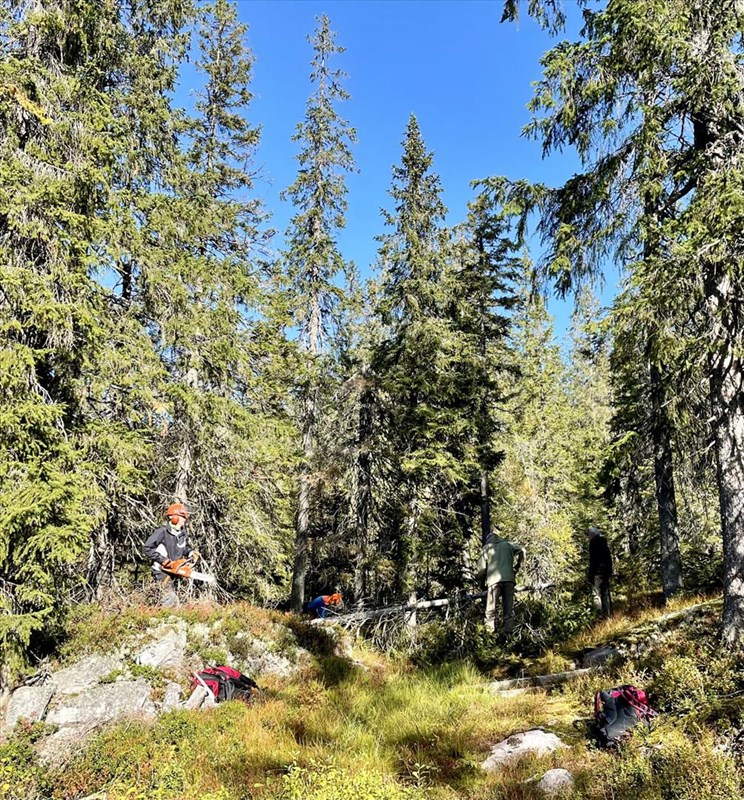 Gunstein Hansen og Lasse Grønningsæter ryddet løypa fra Kalrasen til Stormyra og opp til den fine utsikten fra benken på Volla. Foto: Lasse Grønningsæter.