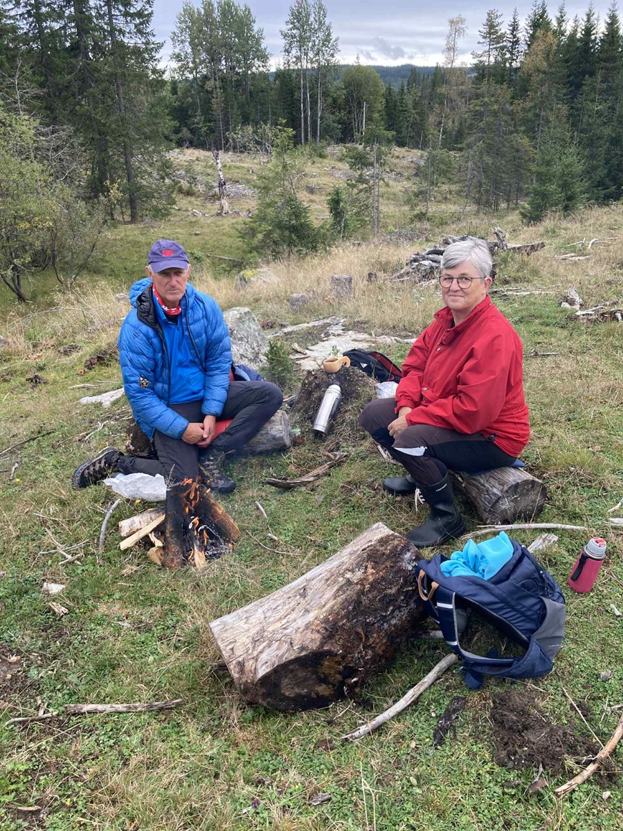 Harald og Hege Marie tar pause med nistepakke og bål i løypa Svea-Stormyra-Volla. Foto: Olaf Godli.