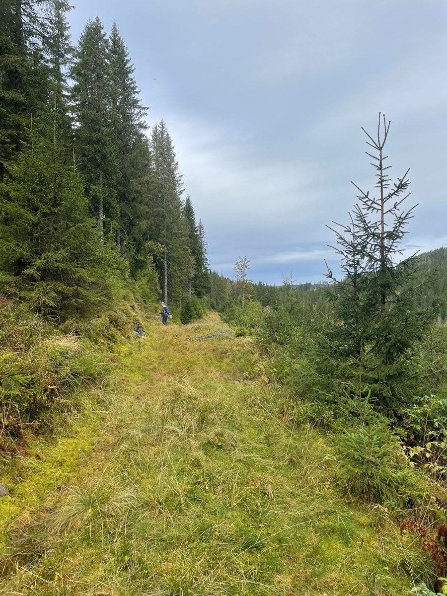 Kjell Ivar kutter smågran og kvist langs Grønntjernløypa. Foto: Lene Li Dragland
