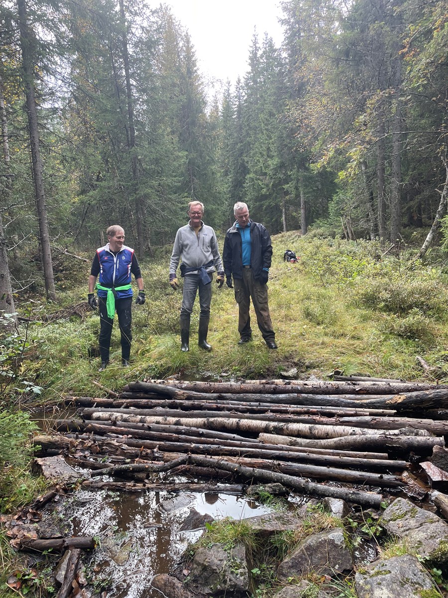 Trond, Bjørn-Inge og Lars Petter fikser ny bro. Foto: Ragnar Bang Huseby