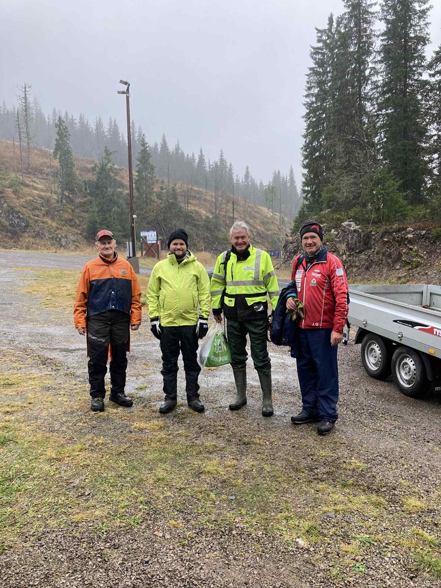 Olaf, Haakon, Tore og Johnny klar for dugnad i regnet. Foto: Hege Marie Haakenstad Godli.