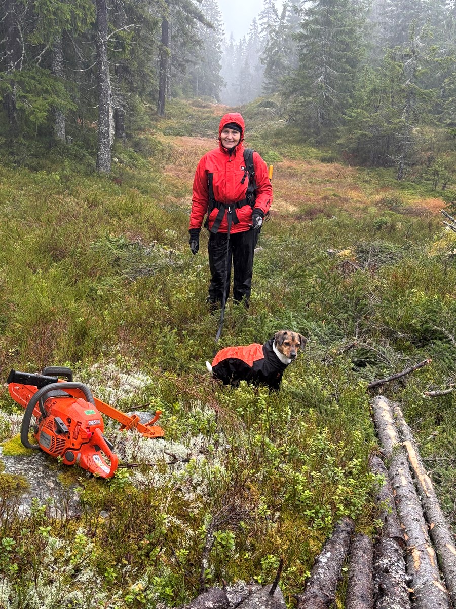Med hekksaks i Kanalløypa der bringebærene og smågran vokser inn i løypa. Foto: Lene Li Dragland