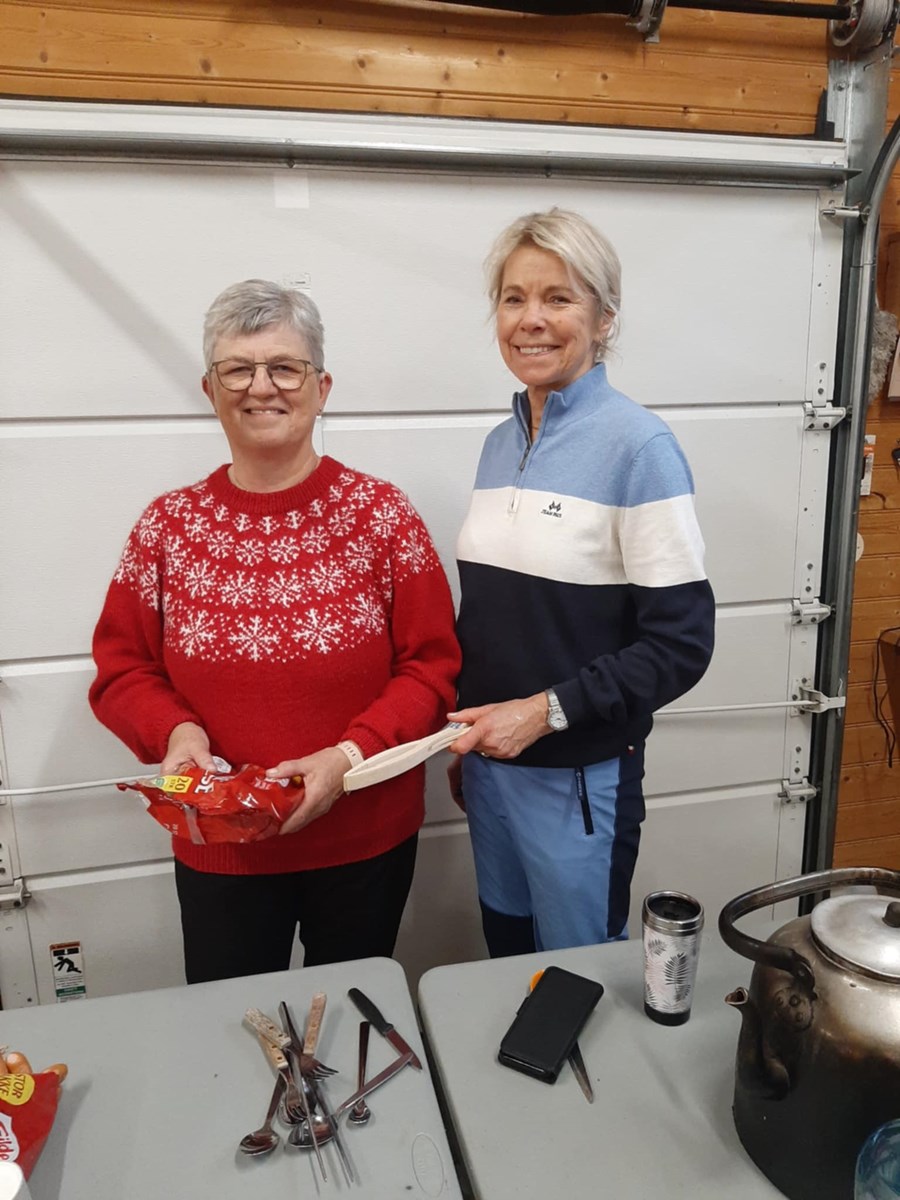 Hege og Nina disket opp med pølser, kaker og drikke før medlemsmøtet. Foto: Olaf Godli