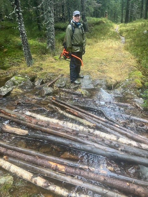 Brua ved Svartbekkhytta mangler fortsatt bord, de skal kjøres fram når frosten kommer. Foto: Thorvald Grung Moe